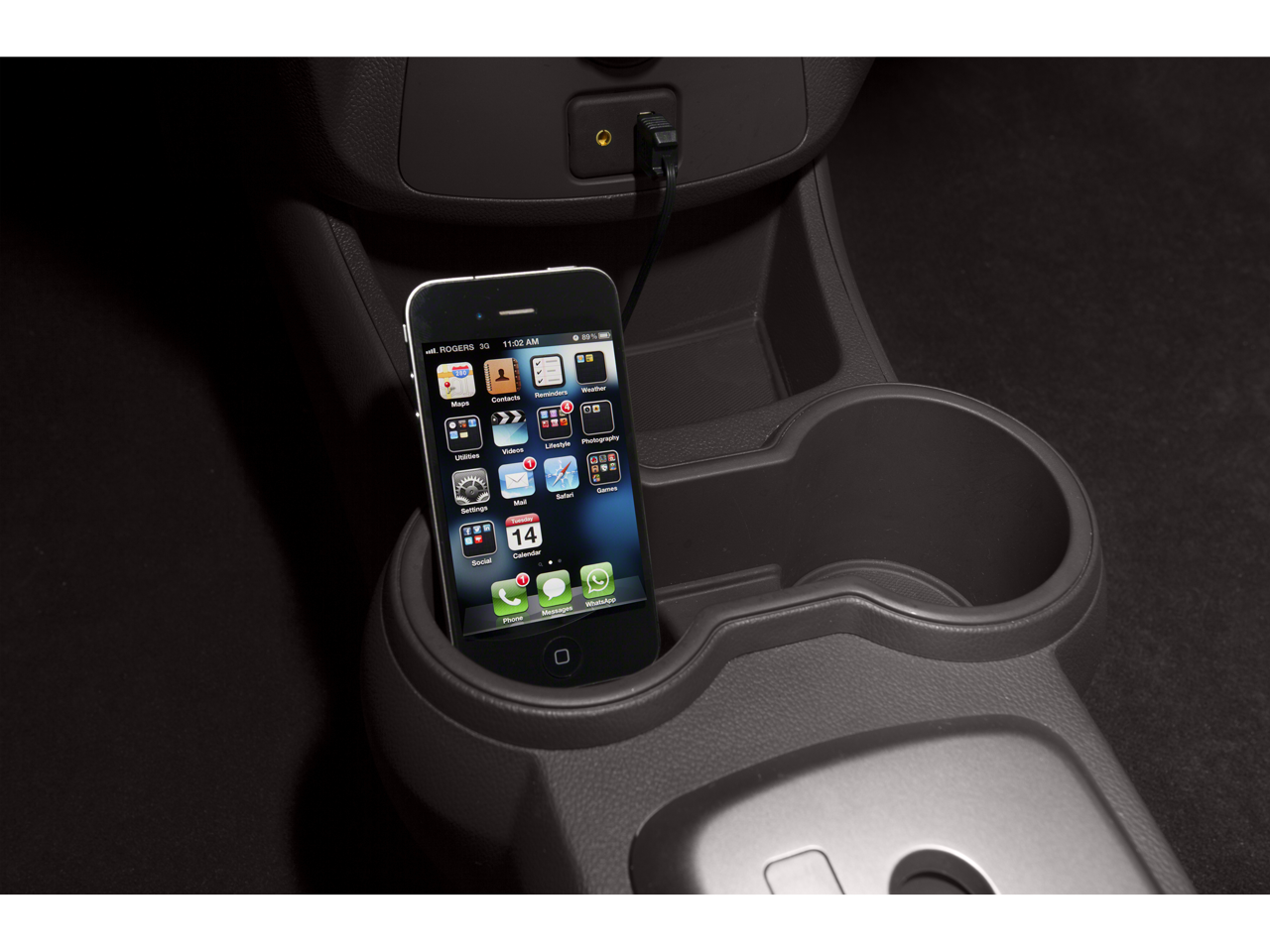 - Audio system feature, auxiliary input jack located in front center stack storage bin